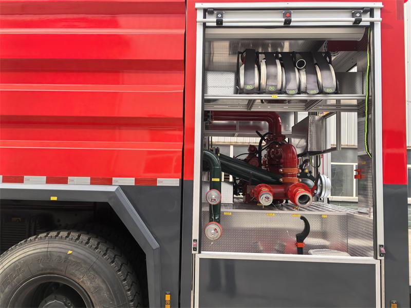 Voordat de levering plaatsvindt Beiben 6x4 WP10.380E32 brandweerwagen Vanuit onze fabriek hebben we een fabrieksinspectie van de brandweerwagen uitgevoerd, inclusief regenwatertests, prestatietests van de brandweerpomp en brandmonitor, en een eindinspectie van het lasproces, de lak en andere aspecten.