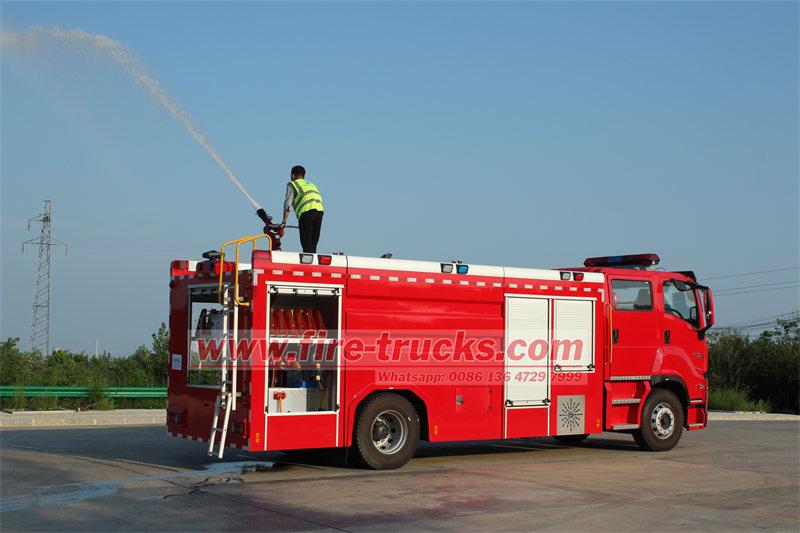 tanker material PP, 4X4, 6X6 drive, RHD drivePOWERSTAR 8000L waterbrandblusser is gebouwd op een ISUZU GIGA 4×2 chassis en wordt aangedreven door een ISUZU 6UZ1-TCG61 motor. De cabine heeft een platte vierdeurs cabine en biedt plaats aan maximaal zes brandweerlieden. De watertank van 8.000 liter is gemaakt van roestvrij staal 304, wat zorgt voor voldoende opslagcapaciteit voor blusmiddelen. Uitgerust met een CB10/40 voertuigbrandbluspomp en een PS8/48 brandblusmonitor, garandeert het een snelle reactie op noodsituaties. De rationele structuur, samen met de waterpomp en leidingen van roestvrij staal 304, zorgt voor een flexibele bediening, een zeer efficiënte brandbestrijding en betrouwbare prestaties. ISUZU GIGA waterbrandbluswagen beschikt over een overzichtelijke configuratie en uitgebreide brandbestrijdingsuitrusting, waardoor snelle en effectieve reacties op diverse brandscenario's mogelijk zijn. Het structurele ontwerp garandeert operationele flexibiliteit en veiligheid, terwijl de geselecteerde materialen en technische parameters duurzaamheid en betrouwbare prestaties garanderen, waardoor het een betrouwbaar brandbestrijdingsapparaat is.