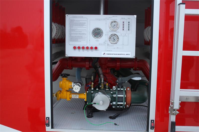 De POWERSTAR Mini Foam Fire Truck is een gemodificeerde versie van het ISUZU NKR-chassis. Hij bestaat uit een bemanningscompartiment en een carrosserie. De bemanningscabine heeft een origineel ontwerp met twee rijen en biedt plaats aan 2+3 personen. Het voorste deel van de carrosserie herbergt de watertank en het apparatuurcompartiment, terwijl het achterste deel de pompkamer bevat. De watertank is gemaakt van hoogwaardig koolstofstaal met een watercapaciteit van 1500 kg en de schuimtank is gemaakt van roestvrij staal met een inhoud van 1000 l. Het voertuig is uitgerust met een CB10/30-XZ brandbluspomp met een nominaal debiet van 30 l/s en een PL8/24 brandblusmonitor op het dak. Dit voertuig kenmerkt zich door zijn hoge wendbaarheid, uitstekende bediening en eenvoudige onderhoud. Hij kan breed worden gebruikt door openbare brandweerkorpsen, fabrieken, mijnen, bedrijven, gemeenten, havens en andere locaties om algemene materiaalbranden te bestrijden.