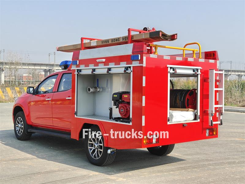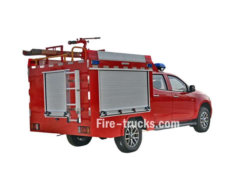 Deze Isuzu pick-up brandweerwagen is gebaseerd op het Isuzu TAGA QL1030CZHW2 Luxury Edition 3.0T diesel 143 pk vierwielaangedreven dubbele cabine chassis. Hij is uitgerust met een Isuzu 4HK1CT6H1 motor en een MLB 5-versnellingsbak. Aan de voorzijde van de opbouw bevindt zich een watertank van 500 liter van koolstofstaal en een schuimtank van 100 liter van roestvrij staal. Achterin bevindt zich de pompkamer, uitgerust met een JBQ4.5/9 handpomp, een elektrische slanghaspel van 50 meter en een PH64 schuim-water mengkraan. Op het dak bevinden zich een PS8/20W brandmonitor, een ladder, een mangat en brandalarmverlichting.